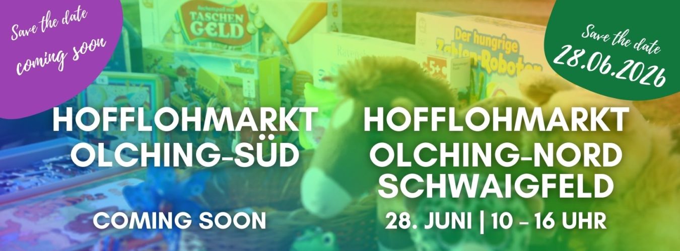 Nach dem großen Erfolg der Hofflohmärkte in Olching in den Jahren 2017 bis 2019 und einer langen coronabedingten Pause finden die Hofflohmärkte wieder seit 2023 statt. Die Veranstaltungen sind VON Olchingern FÜR Olchinger. Die Einnahmen kommen gemeinnützigen Zwecken zugute.