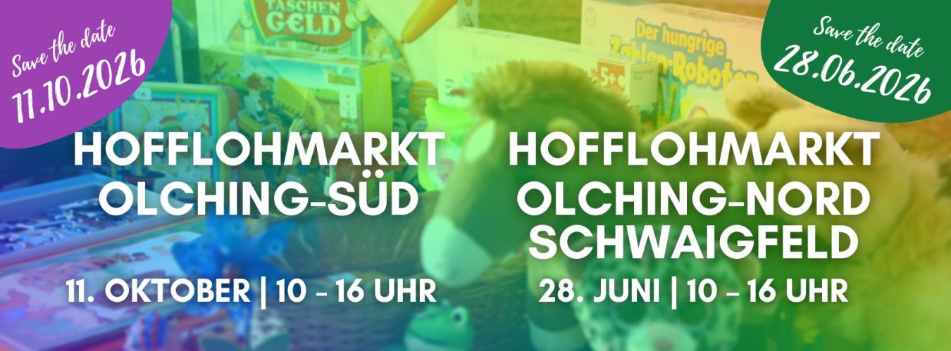 Nach dem großen Erfolg der Hofflohmärkte in Olching in den Jahren 2017 bis 2019 und einer langen coronabedingten Pause finden die Hofflohmärkte wieder seit 2023 statt. Die Veranstaltungen sind VON Olchingern FÜR Olchinger. Die Einnahmen kommen gemeinnützigen Zwecken zugute.